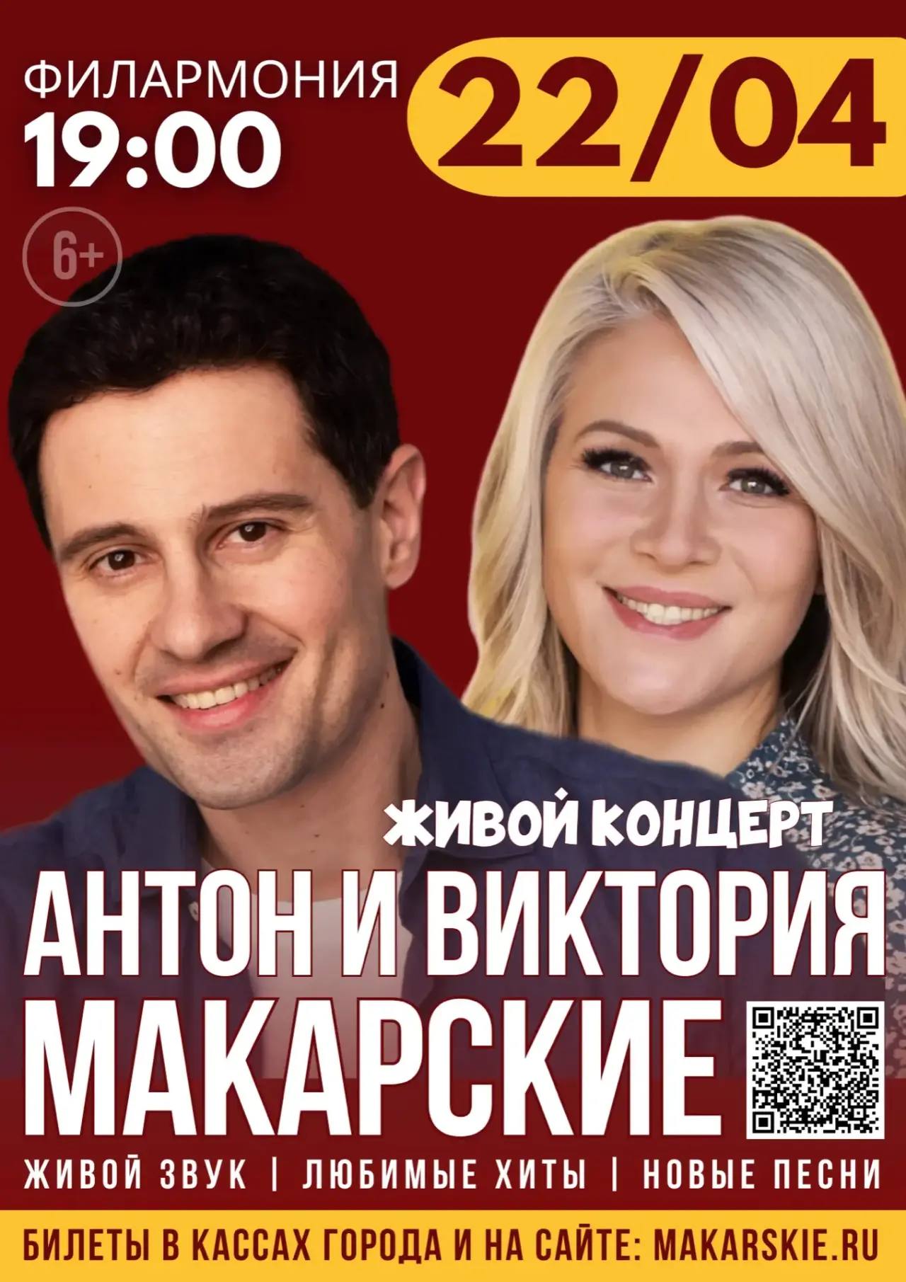 С радостью приглашаем вас на концерт Антона и Виктории Макарских, который состоится в Филармонии 22 апреля в 19:00.